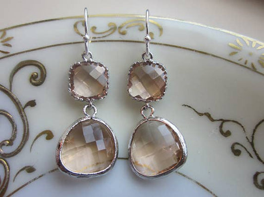 Champagne Peach Earrings Pink Silver Two Tier