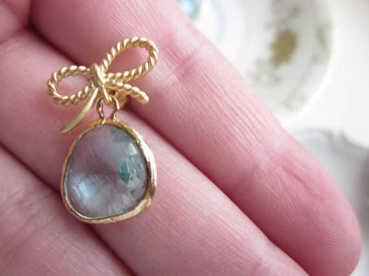 Aquamarine Blue Earrings Gold Bow