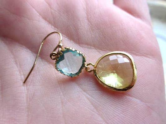 Peridot Earrings Aquamarine Gold