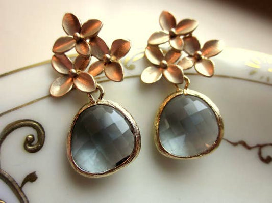 Charcoal Gray Earrings Gold Cherry