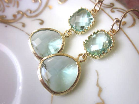 Aquamarine Gold Earrings, Statement Earrings, Bridesmaid