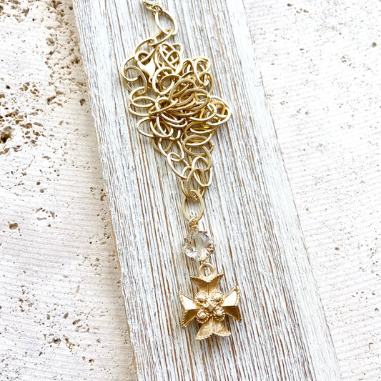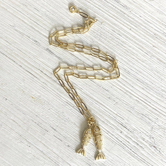 Chunky Y chain matte gold necklace non tarnishing jewerly