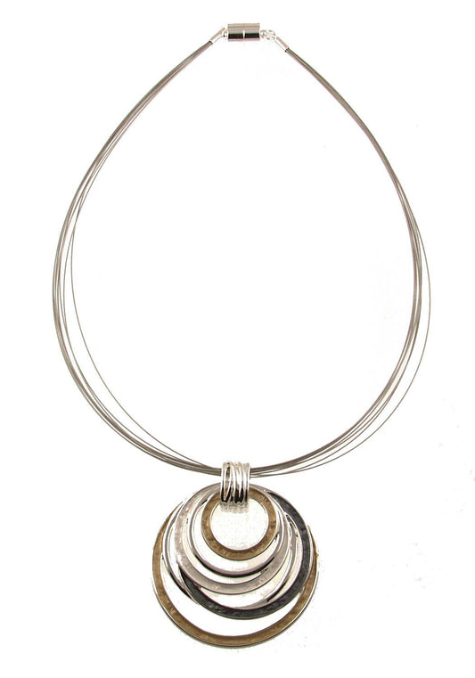 Layered Multi-Circle Pendant Necklace, Three Color Options.