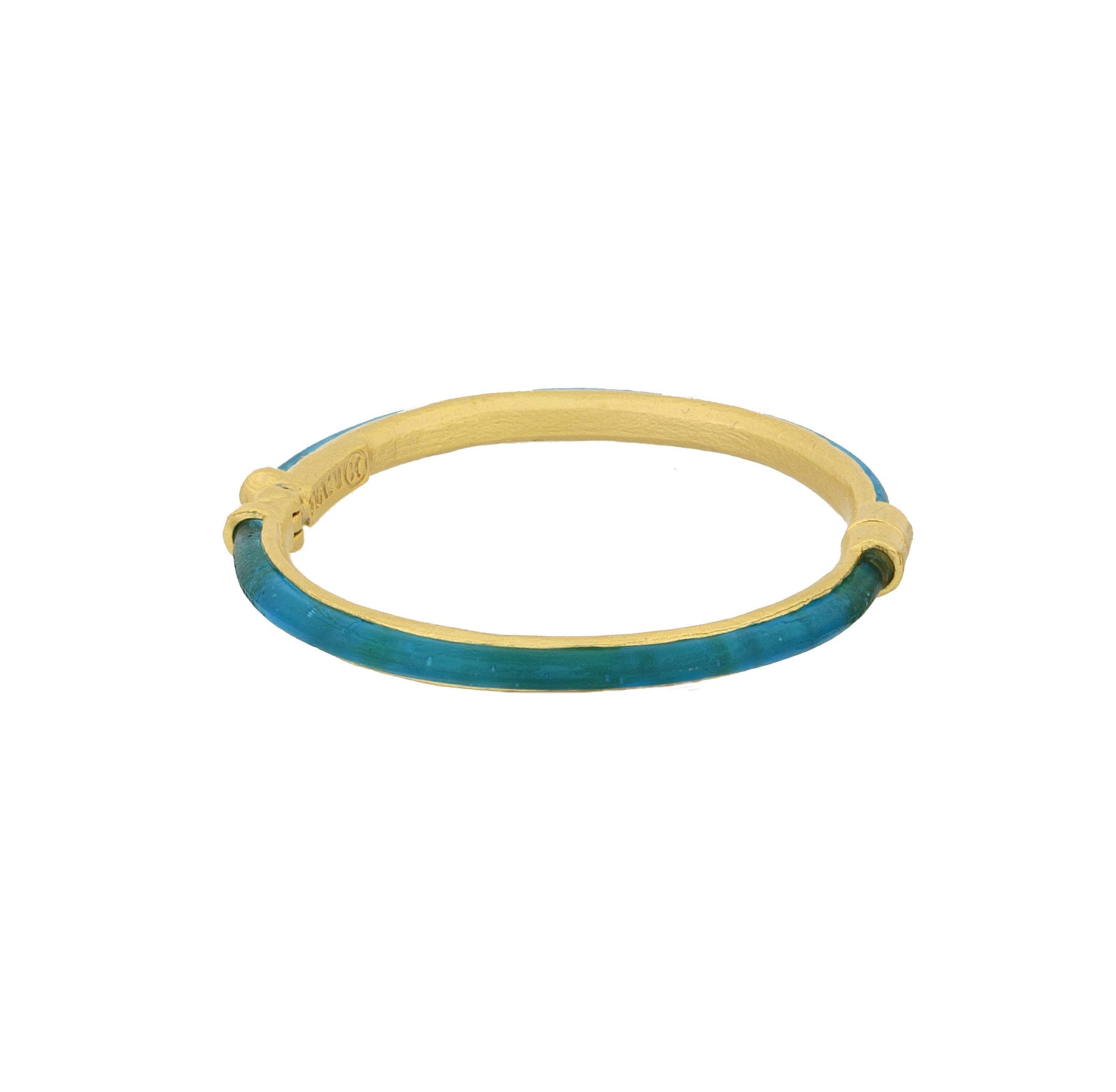 Cast in bronze with an 18k gold finish. Accented with cast glass.