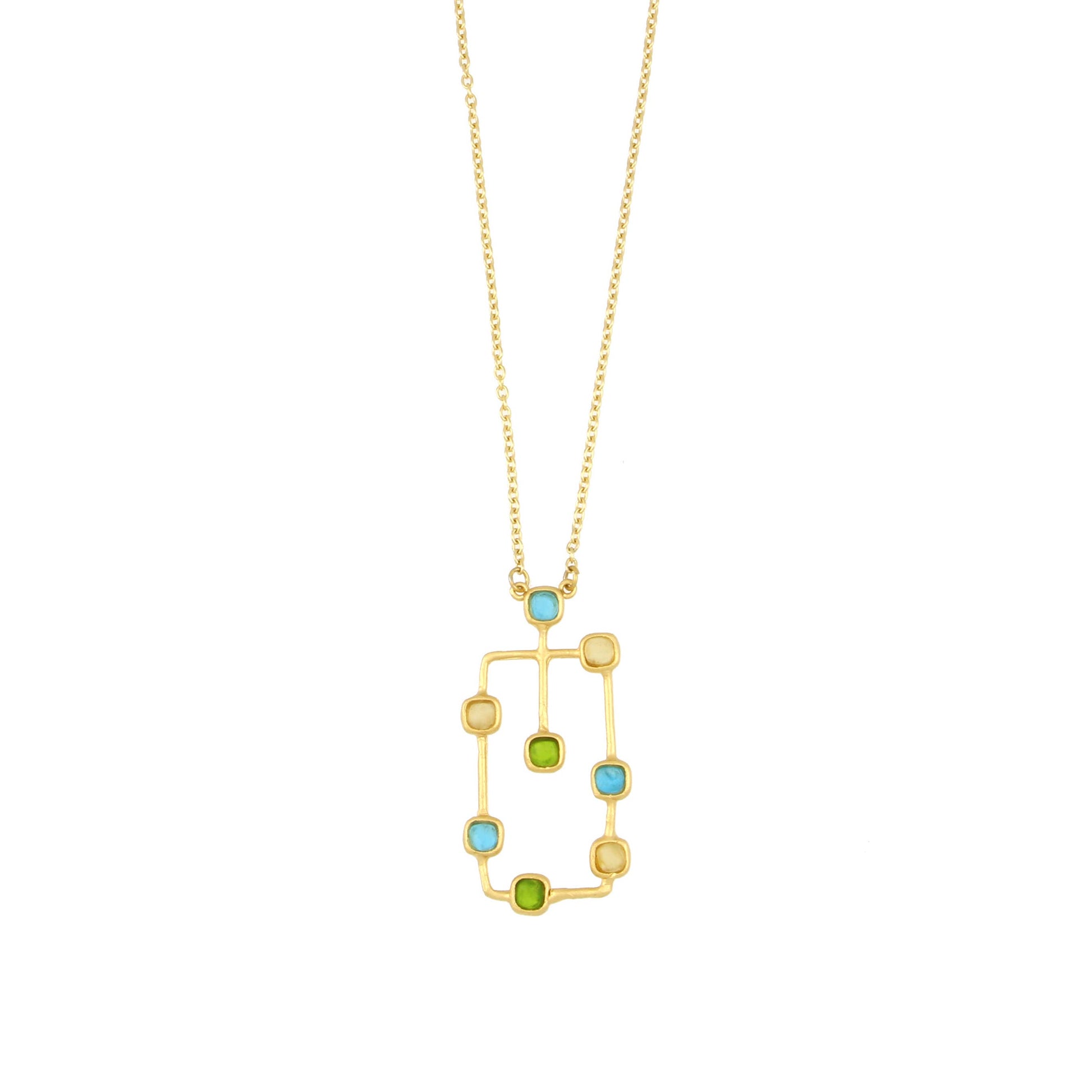 Cast in bronze with a 24k gold finish. Accented with cast glass.