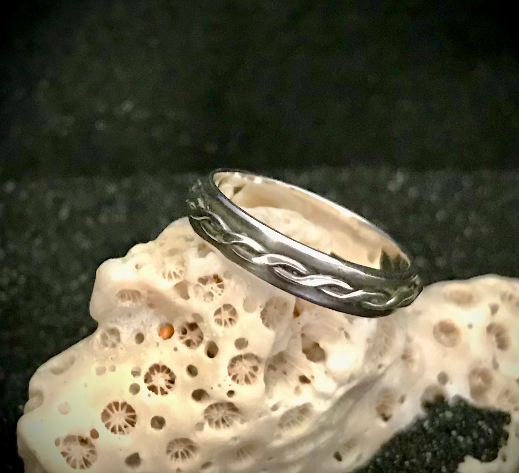 Sterling Silver Hammered Rope Overlay Ring, size 7.5 Oxidized Finish